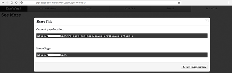 Stories are meant to be told. After using the framework to create a story, it should be sharable. These stories are different in nature than typical linear text articles. Because these stories contain interactive elements and differ from traditional stories, it is important to share certain states of the story.