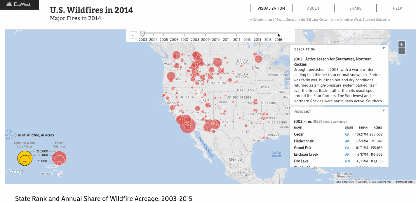 EcoWest Visualizations is a data visualization story telling framework I designed and developed for Standford's Bill Lane Center for the American West in collaboration with renown journalist Geoff McGhee.